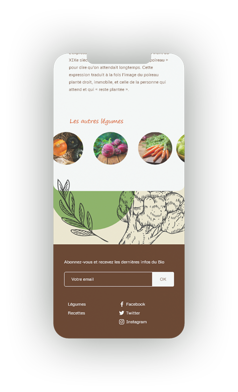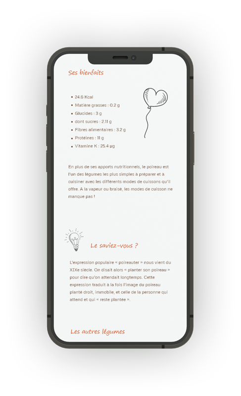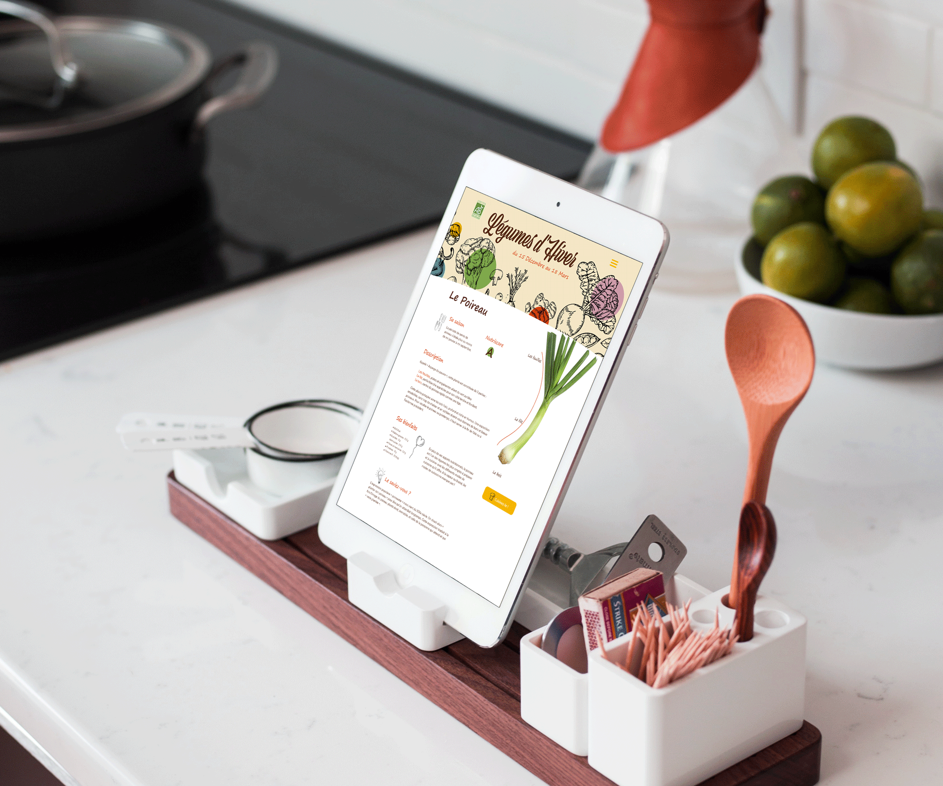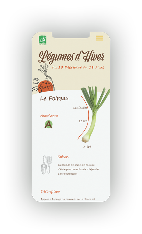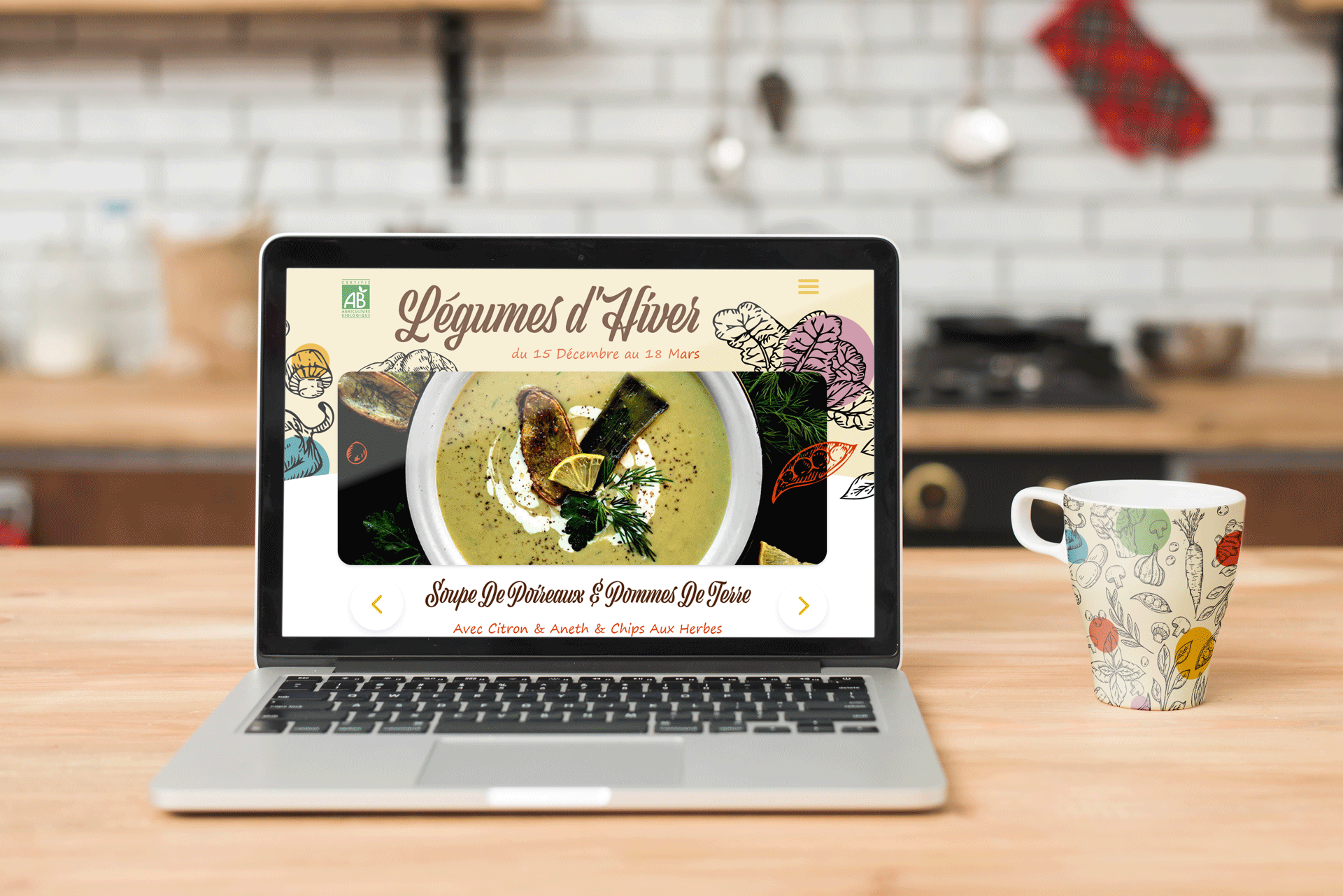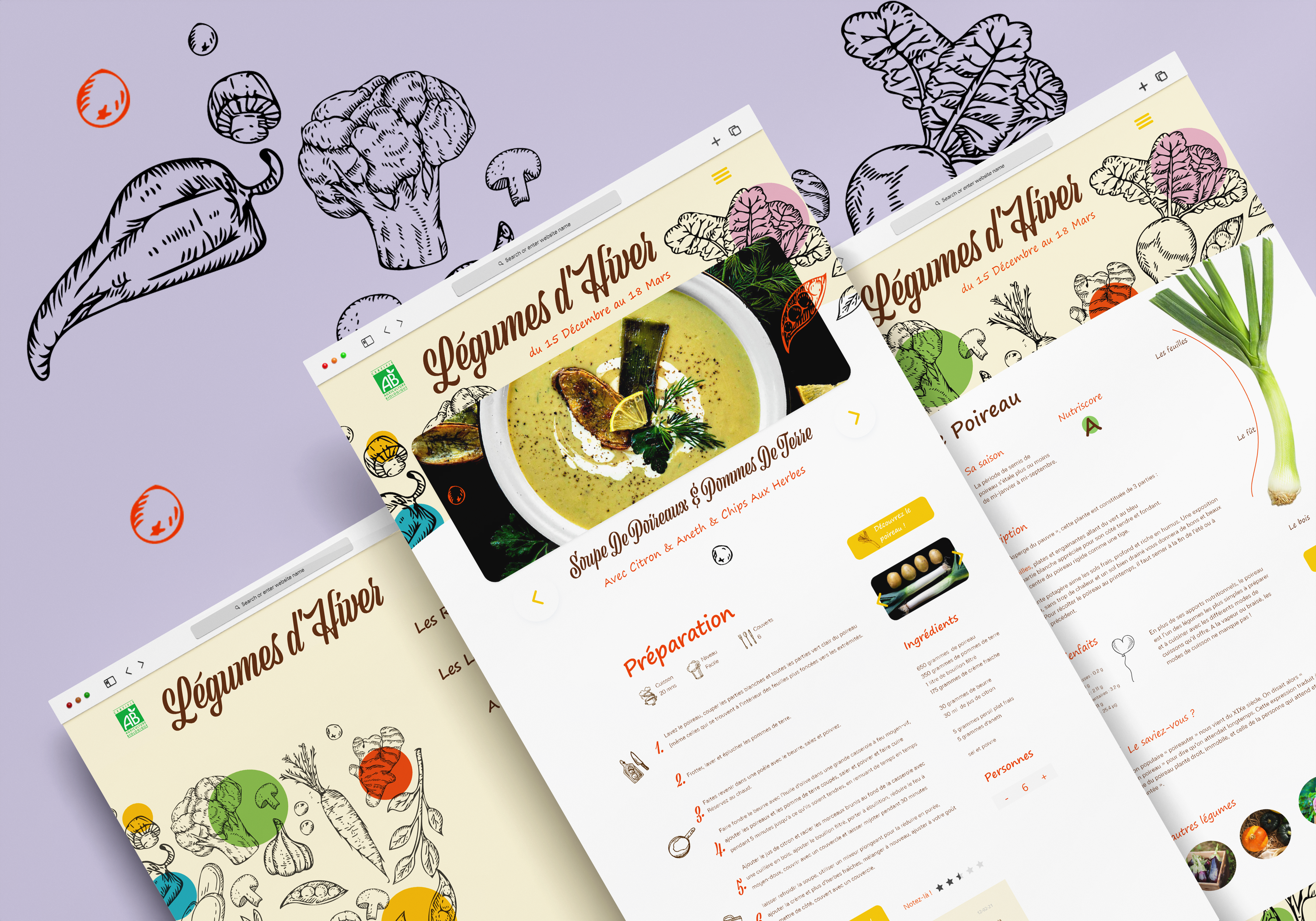 Réalisation d'un site faisant la promotion des légumes de saison, mise en page de la présentation d'un légume et d'une recette.