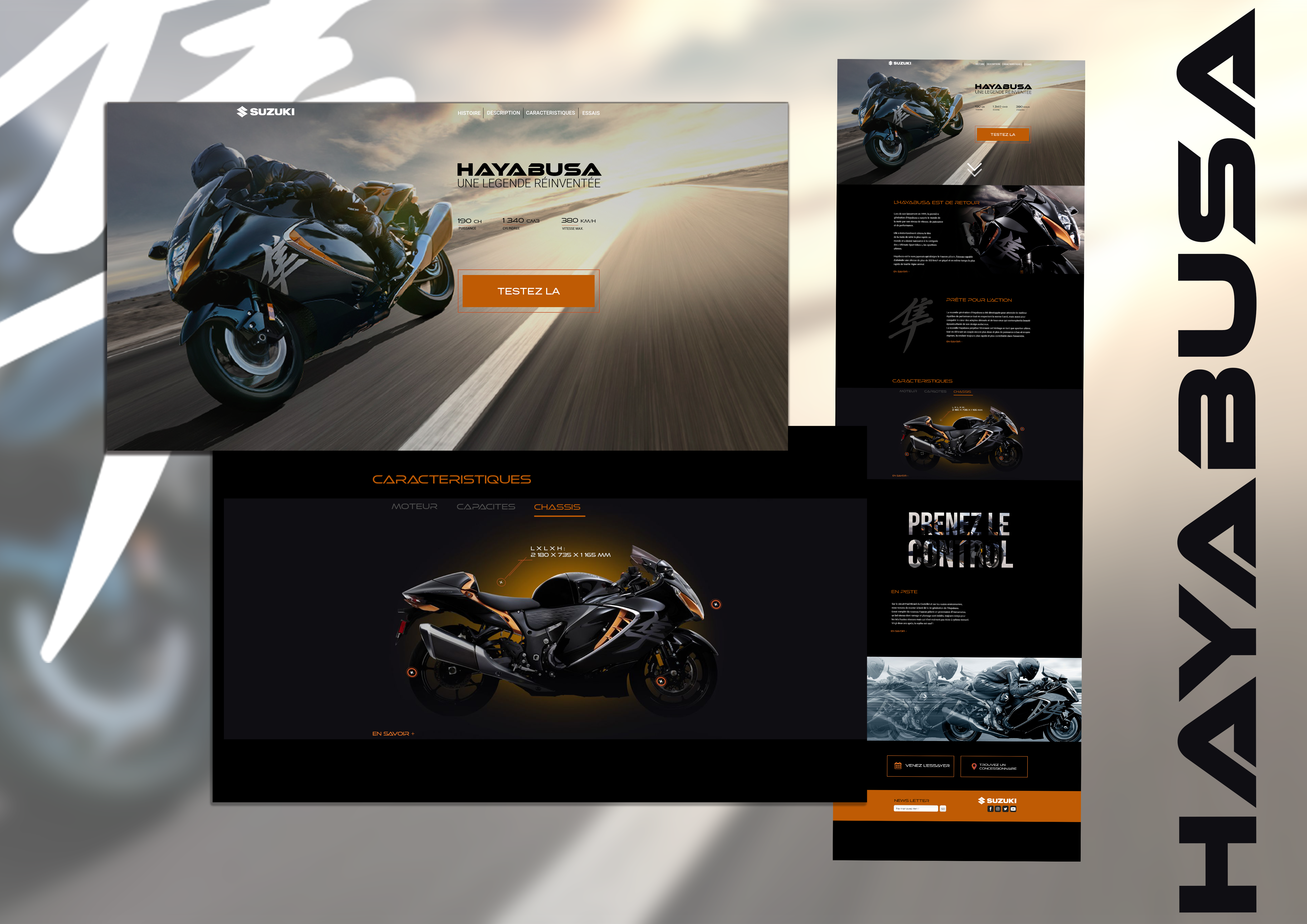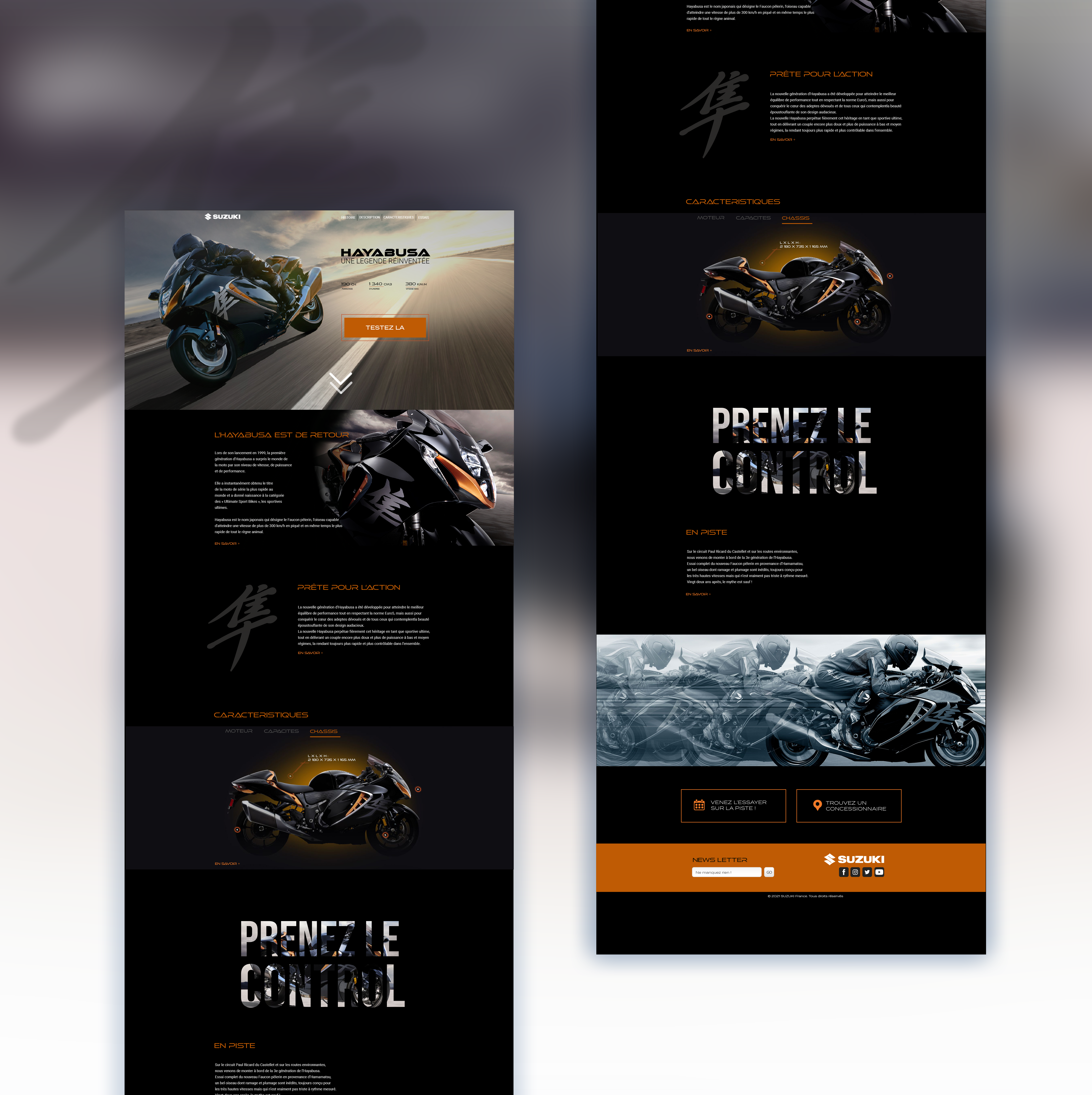 Réalisation d'une landing page sur la mise en avant d'un modèle de moto au choix. J'ai opté pour la Suzuki Hayabusa pour le design de la machine et le caractère qui en ressort.